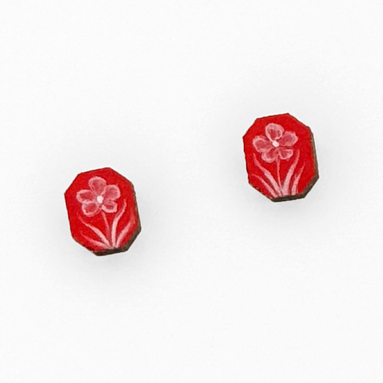 Hand painted wood, glass bead, 14k gold filled ear wires